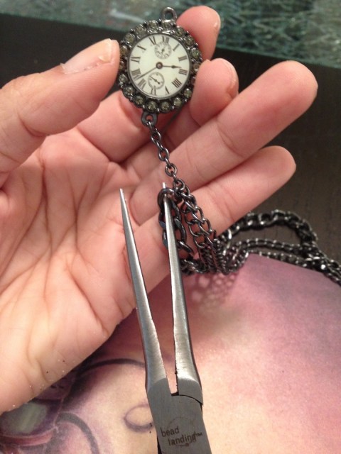 During the Holidays, I’m taking some time off from work to enjoy my new home, the lovely company of my fiancee and dog, and do a little site-seeing. During my “staycation”, I decided to get back to my crafty roots and work on some DIY projects. Back in my college years I got into sewing, making jewelry and other fun little craft projects. Yesterday, I kicked off my renewed DIY-ness by making a replica of the Charlotte Olympia Pandora clutch. Today, I’ll show you how to Do it Yourself, and make a fabulous, antique-inspired Collar Brooch Necklace. Here’s how!