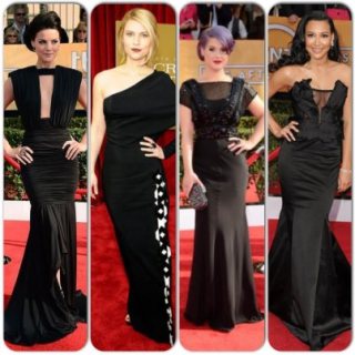 With a glass of Pinot Grigio in hand, I watched the E! Entertainment SAG Awards Red Carpet show and the glamorous dresses were the cause for ooh’s and aah’s in the comfort of my living room. There were definitely a few disappointments, but the evening trends were so wonderful, I blocked out Anne Hathaway’s Bellatrix style dress, eek! Black was huge on the red carpet, and as timeless as the color is, the designs varied, and the ladies brought the glam on. Navy blue will be be dubbed the color of the night and the looks were amazing! Nicole Kidman, as always, looked like a Porcelain Doll and was a vision in Vivienne Westwood. She was my pick for Best dressed, although Amanda Seyfried was a strong contender.