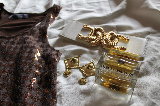 Así me preparé para despedir el año. Mezclé tonos dorados y me encantó el resultado. De verdad que no estaba de humor para ponerme nada incómodo, así escogí este trajecito suelto de Escarcha Boutique en Puerto Rico (si, estuvo colgando en mi closet por varios meses). Me encanta el brillo con lentejuelas en patrón. El color era como un oro chocolate, así que decidí combinarlo con accesorios dorados en amarillo y rosa. Mi pieza favorita es la correa de serpiente, de la misma boutique. Completé mi look con zapatos color piel. Quería que el enfoque fuera el traje y no sobrecargarlo, lo cual es muy fácil con dorado de pies a cabeza.