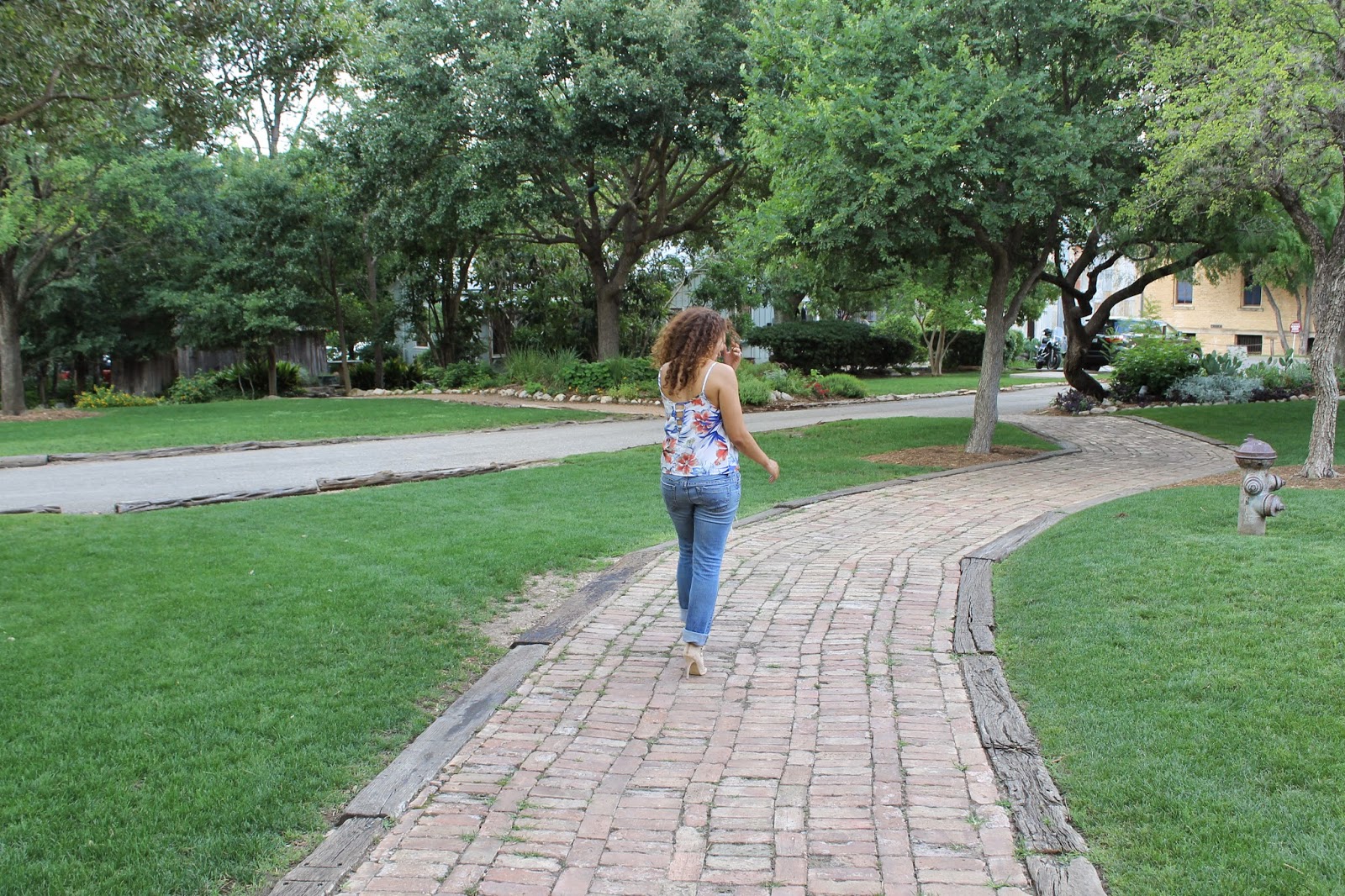 Estas fotos me las tomó mi padre cuando fuimos a Gruene. En nuestro corto viaje, fuimos al distrito histórico que queda a 1 hora de San Antonio en New Braunfels, TX. Es bien bonito y el Gristmill Restaurant está a orillas del río Guadalupe. El ambiente es tranquilo y hermoso. La comida es muy rica también! Estaba vestida casual con mis mahones de Guess, que naturalmente se han roto, una blusa florida y llevaba mis tacones favoritos. Los próximos fines de semana son tremendas oportunidades para aventurar en los pueblos aledaños y descubrir un poco más de Texas. Qué aventuras tienes planificadas para este verano?