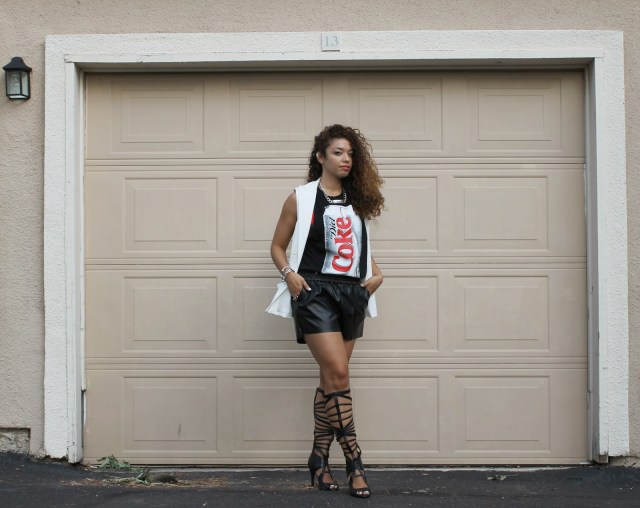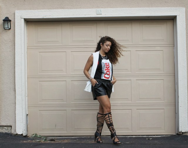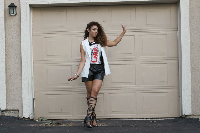 This weekend was full of events! On Saturday, I attended the Work It! Fashion Show at the new Goodwill Store in San Antonio. It was hosted by the Goodwill Bloggers, among them was upcycle designer Agosto Cuellar. Dubbed “Wildcard Cuellar” by Tim Gunn on Project Runway, Agosto has made the fashion scene not only interesting but also sustainable; right up my alley. The show was fantastic! The runway was full of layering, unexpected twists and wonderful people. I had a great time and I donated a huge bag full of clothes and a pair of Michael Antonio shoes, new in the box. I wonder how whoever purchases the items gives it all new life. For the event I wore an oversized t-shirt with cut-off sleeves, keeping with the reuse theme, and vegan leather shorts from H&M. I finally got to wear the creamy vest by Mossimo for Target that I’d been after for over a month!
