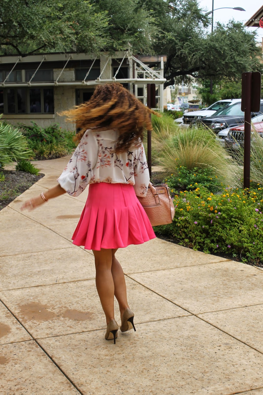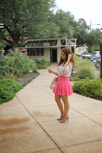 Feliz Primer Día de Otoño! Quiero romper las reglas un poco y mostrar un look de mi último fin de semana de verano. Todavía está cálido en Texas y quería disfrutar de los últimos días que aún me puedo poner faldas cortas sin congelarme las pompis. Así despido al verano y le doy la bienvenida al Otoño!