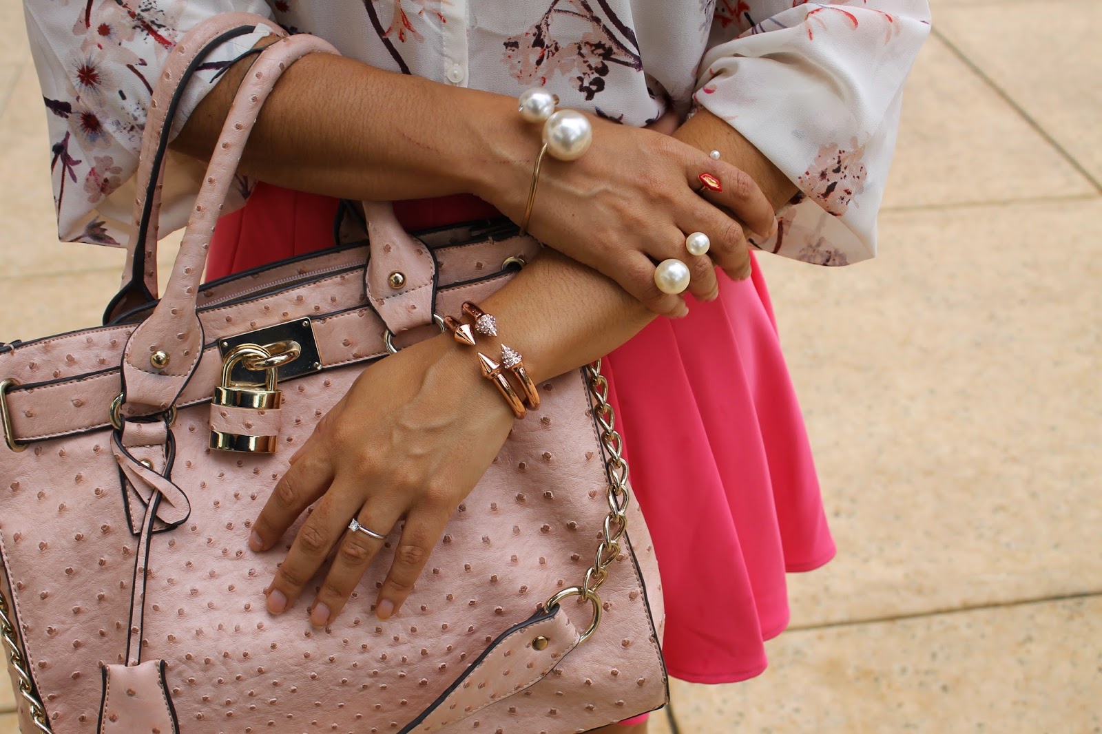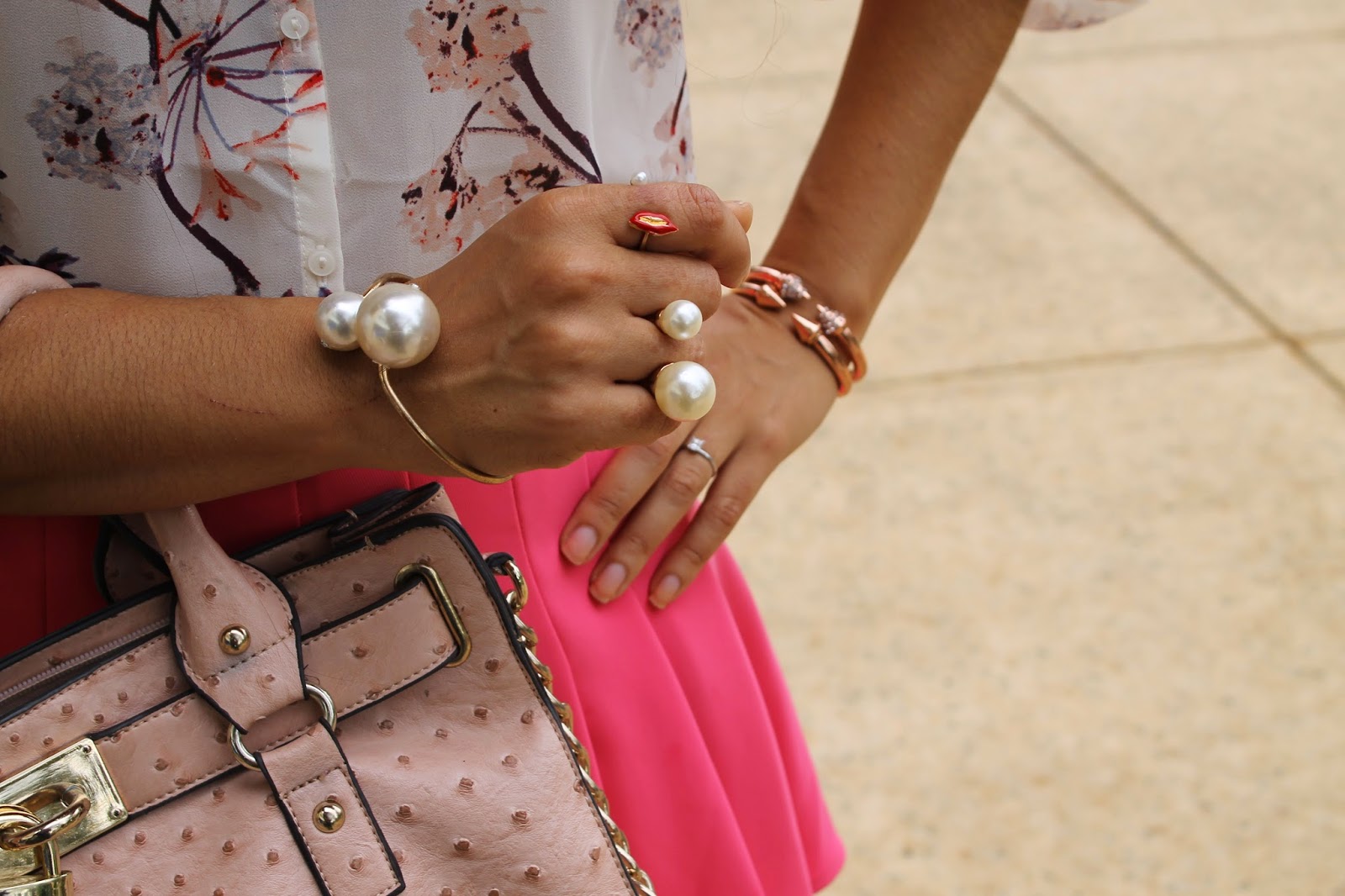 Jewelry: Pearl bracelets, rings from Sammy Dress
