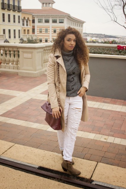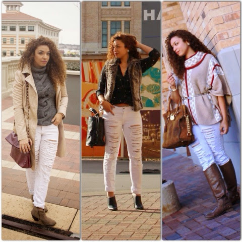 El invierno en el Sur de Texas ha estado medio loco. Una semana hace calor, subiendo a 79°F, y el próximo entra un frente frío y baja a 40°. De igual manera no ha hecho demasiado frío y por lo menos no se han helado las carreteras. Una pieza de ropa que he podido usar con frecuencia ha sido un par de mahones blancos rotos blancos estilo “boyfriend” que compré en Forever 21. Los ragados no son muy anchos aunque son muchos, pero el viento frío realmente no me afecta. Y si hiciera frío me los pondría con unos leggings negros finitos debajo. Me encantan demasiado y son super cómodos también!