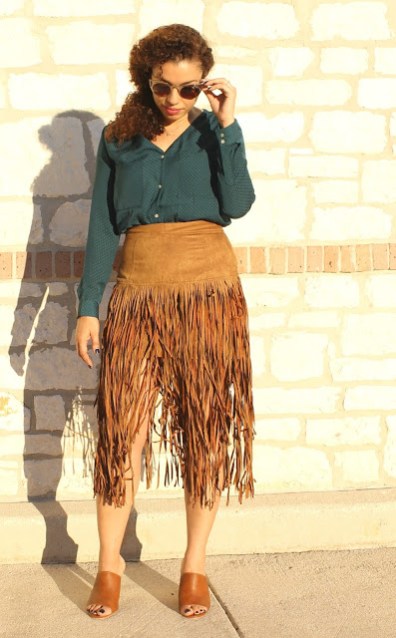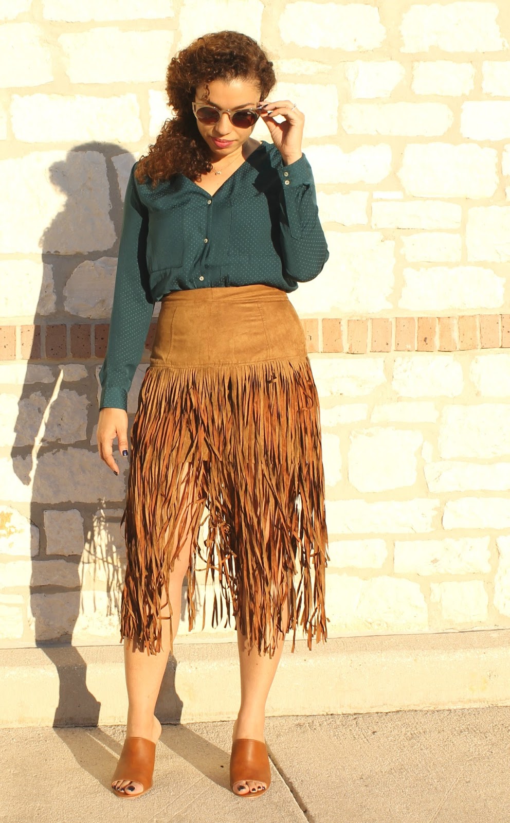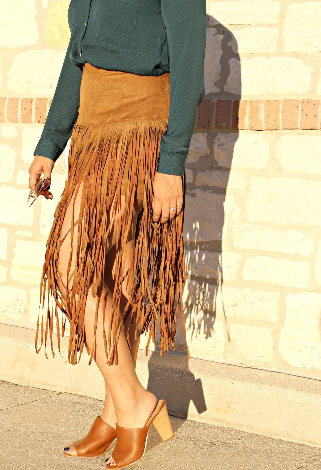 Si, me encantan los flecos. Amo como fluyen y lo divertido que son. Me encanta que se puede llevar formal o casual. Simplemente, me hacen querer bailar! Esta falda de JustFab es perfecta! Es de gamuza vegana y es una falda mini debajo de flecos midi. O sea, a quién no le gusta un 2 en 1?! El talle alto es queda muy bien y muestra mis curvas, de las cuales estoy muy orgullosa. De seguro encontraré muchas maneras de usar esta falda en el Otoño.