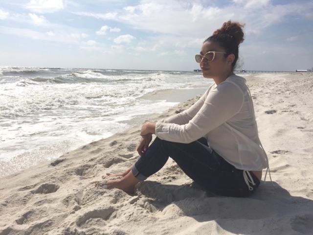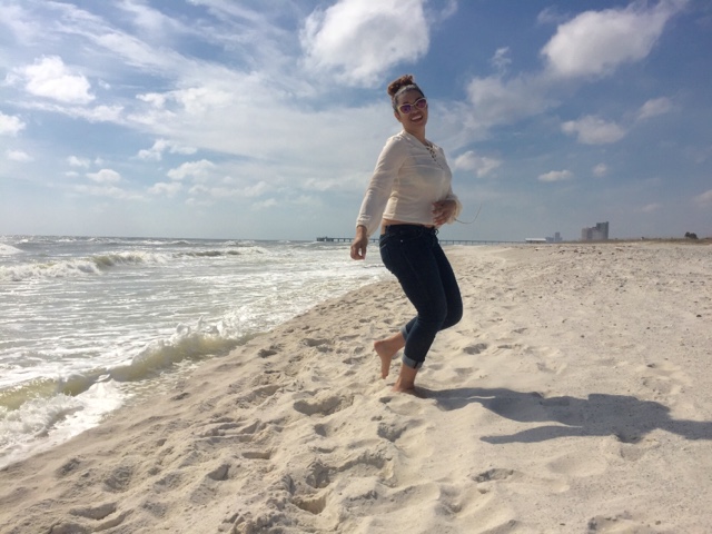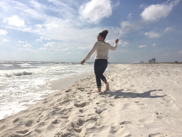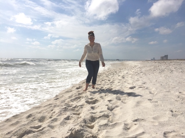 Hello, my loves! I’m still on the road so unfortunately I didn’t spend Valentine’s Day with my husband. I was feeling really down about it, so my coworkers drove me down to the coast for the weekend. We went to the Alabama Gulf Shore Coast and it was just lovely. It really wasn’t beach weather, but it was sunny enough to stroll along the sand and dip our feet in the water. The breeze was salty and cool, the sun was shining bright and the powdery white sand practically dissolved at my feet. Even though I was missing my honey, I’d say it was a perfect day…