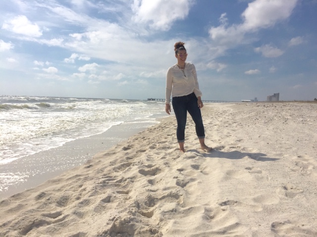 Hola, mis amores! Aún me encuentro fuera por trabajo, así que desafortunadamente no pude pasar el Día de San Valentín junto a mi esposo. Me encontraba muy triste, así que mis compañeros de trabajo me llevaron a la costa por el fin de semana. Fuimos a la Costa de Golfo en Alabama y estuvo de maravilla. Realmente no era clima playero, pero estaba lo suficiente soleado como para caminar por la arena y mojarnos los pies en el agua. La brisa tenía salitre, el sol estaba brillando y la arena como polvo prácticamente se derretía bajo mis pies. A pesar de estar extrañando a mi amor, puedo decir que fue un buen día…