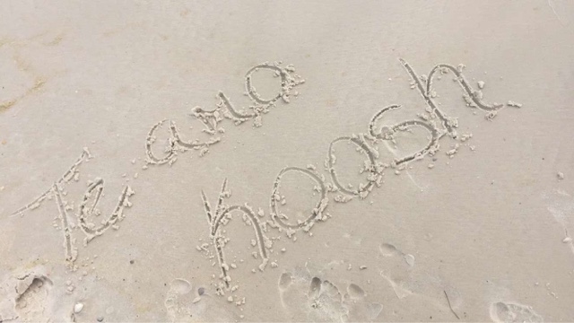 | Writing in the sand, missing my love (Koosh is our pet name for eachother,don’t ask. LOL) |