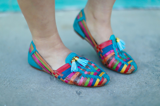 Now I HAVE to talk to you about these shoes. These are Fiesta Feet! It’s a local brand from San Antonio, but the shoes are handcrafted in Guadalajara, Mexico. My dear friend, Susie McKinley came up with the concept when she made the mistake of wearing heels while touring around the city, and came upon a traditional huaraches vendor in the market and the level of comfort she felt was unparalleled. They traditionally come in brown and tan, so she decided to make them fun with tons of color and different designs. Fiesta Feet are handcrafted in Mexico by a small group of artisans who are fairly paid and treated, and the company has pledged to donate part of the proceeds of the shoe sales to Kasa Kamami, an all girls foster home in Mexico. These are definitely the IT shoe of the Summer, as stated in Style Lush TV at the beginning of the year! I’m wearing the Confetti Popper Shoe and they are back in stock, so be sure to grab yours before they’re all gone! The colors and styles vary, but these have to be my fave, then the Rose Gold loafers are a close second.