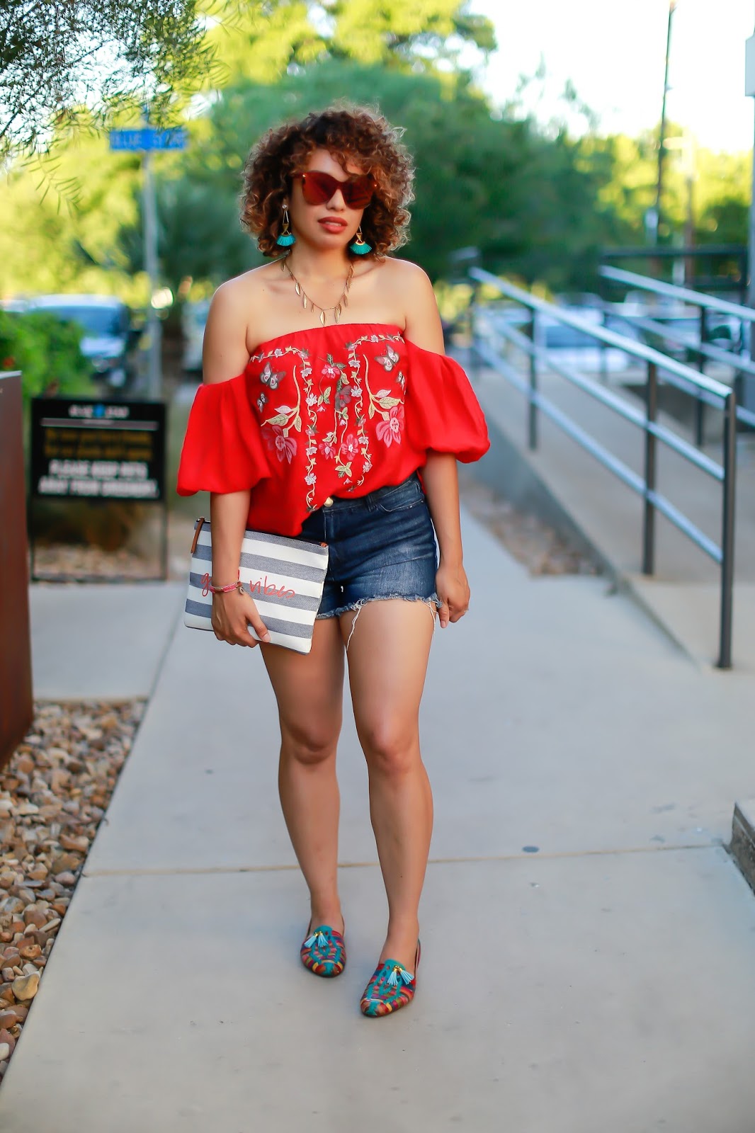 This outfit is perfect for a Summer BBQ, of which we’re huge fans! The top is from Francisca Showroom, a South Texas based boutique that carries L.A. based lines that are absolutely adorable, which fit my Latina curves perfectly. They recently held a Summer Pop Up Shop at Revolución Coffee & Juice Bar, and I couldn’t pass up the chance to stock up on some Summer must-haves! I’m all about the embroidery and statement sleeves this year, so this top was just perfect! All the jewelry and the “Good Vibes” clutch is from Stella & Dot. In case you haven’t heard of this brand, it’s a jewelry and accessories line that carries 100% unique designs that you won’t find anywhere else. Most of the pieces are 2 in 1 and up to 5 in 1 designs so they’re insanely versatile! The earrings actually turn into 3 completely different styles and the necklace is only a small piece from a layered necklace that can be worn 5 ways! I’m so obsessed with this line, I decided to become a Stella & Dot Stylist, so you can shop directly from the link below and you should totally take advantage of the major sale that’s going on RIGHT NOW, where you can get $25 for every $50 you spend (to use on future purchases) from now through 6/19/17. Go check it out here: www.stelladot.com/JeanellyC