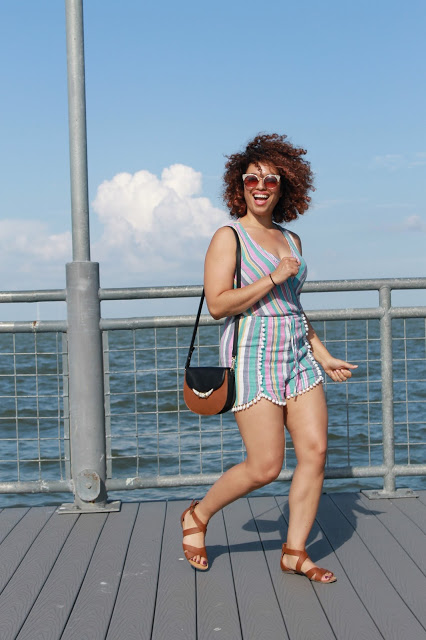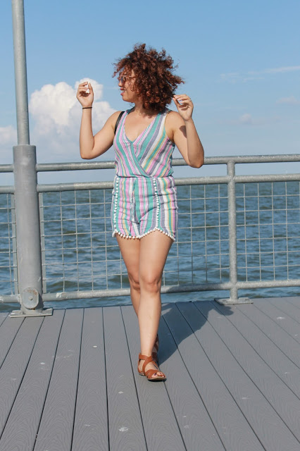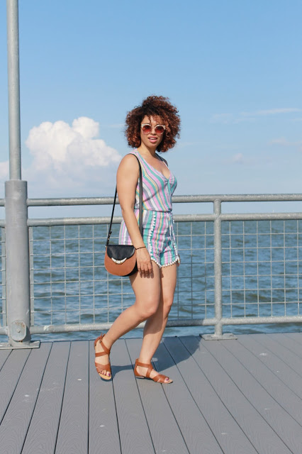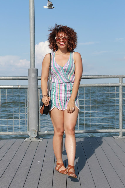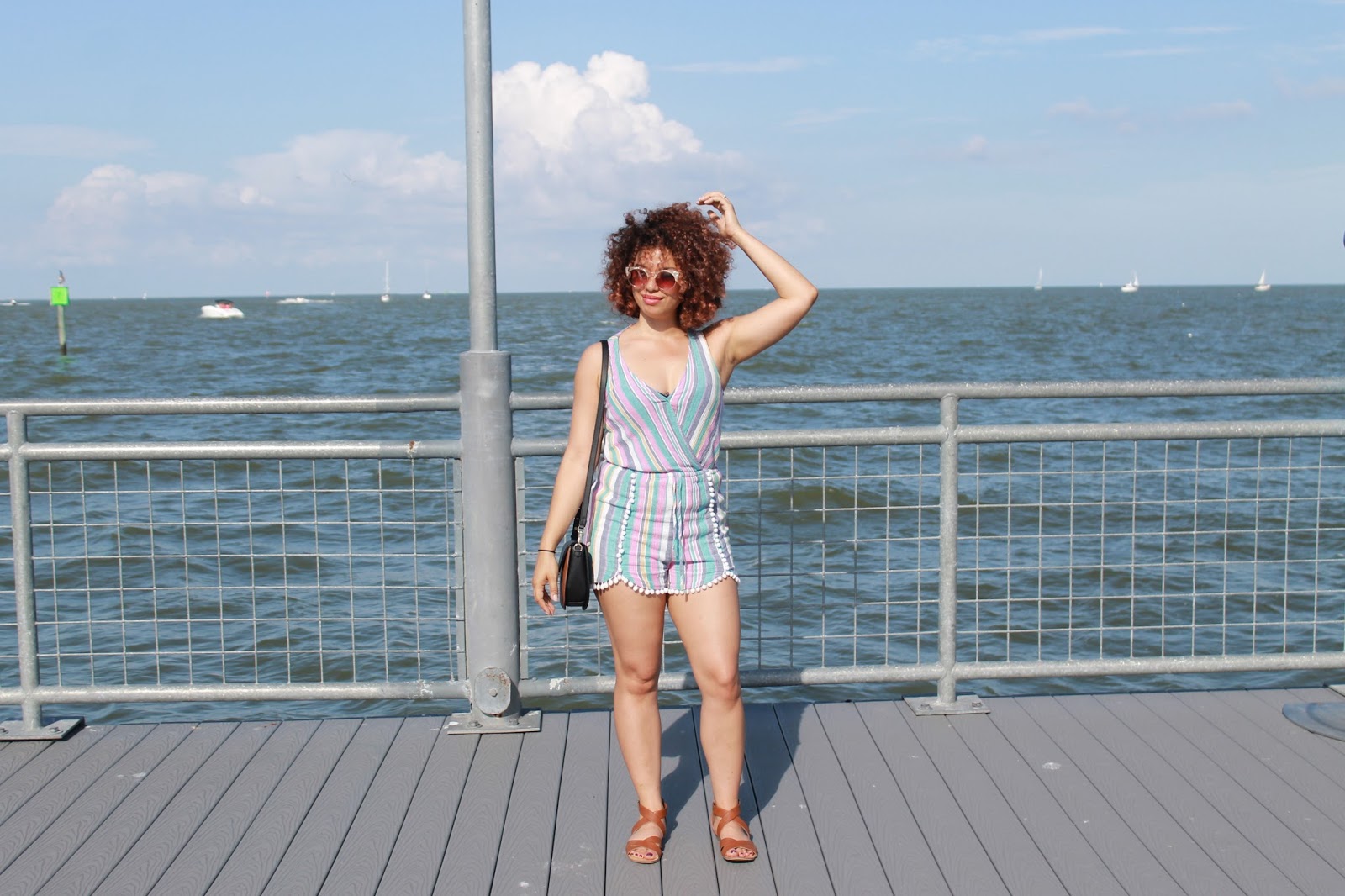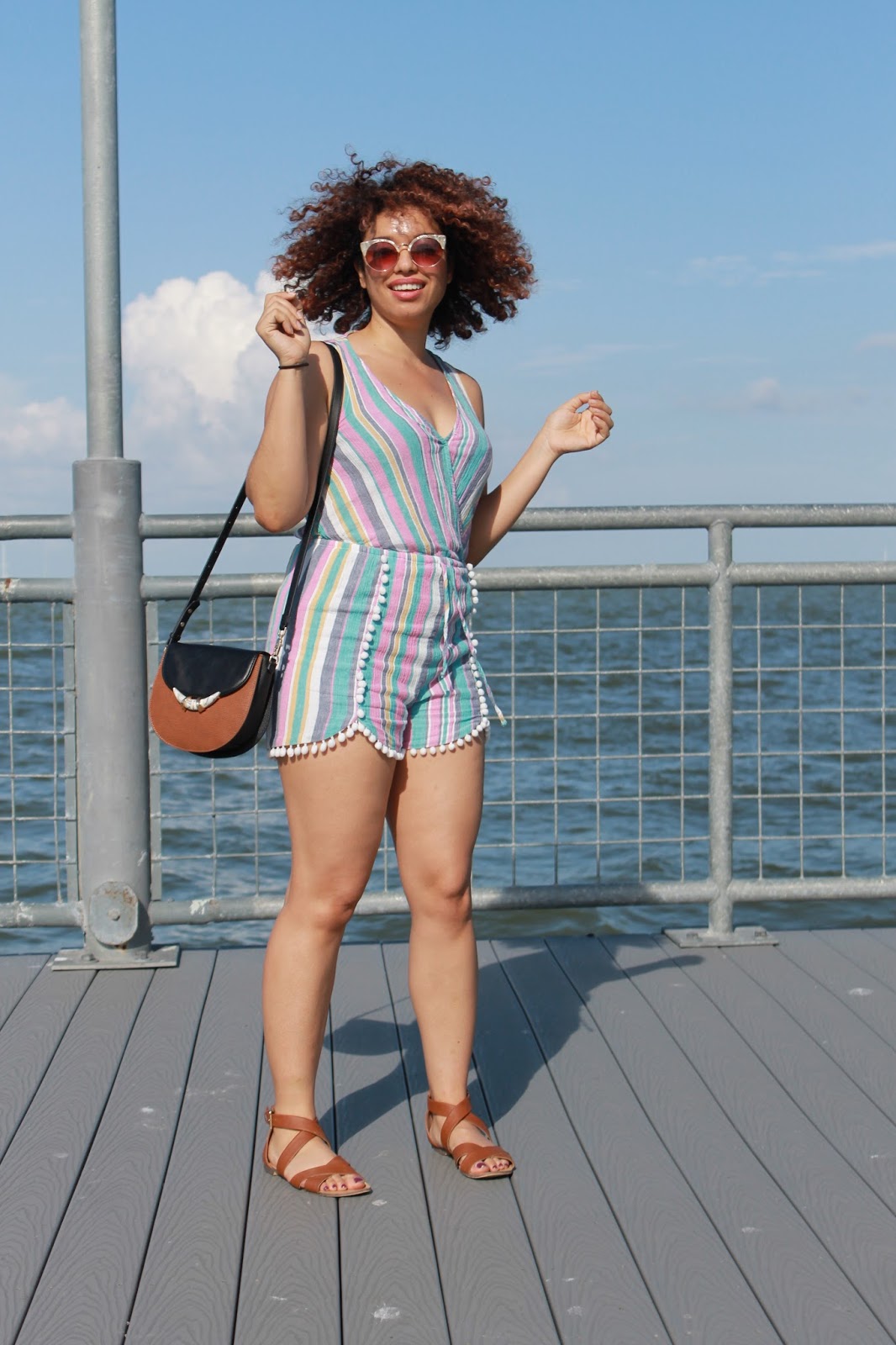 Hi, loves! Hope you’ve had a wonderful 4th of July Weekend! I recently went to Houston for a weekend getaway and we ended up going to the Kemah Boardwalk and Galveston. It was such a lovely day! I wore this striped romper with pom pom details from my previous PS by JustFab box on that super hot and humid day. As comfortable as it was, I still had like a gallon of sweat dripping down my back, but I endured thanks to the tons of water I drank.