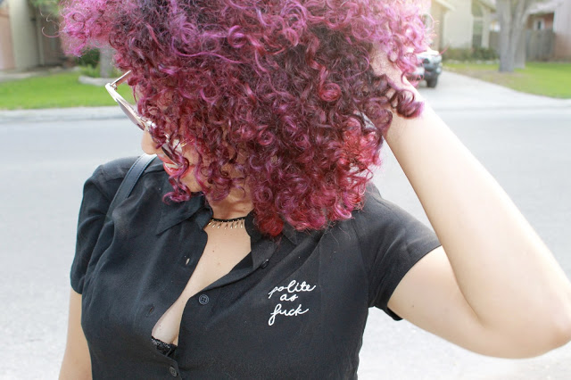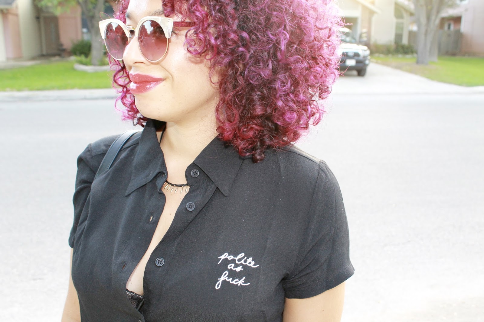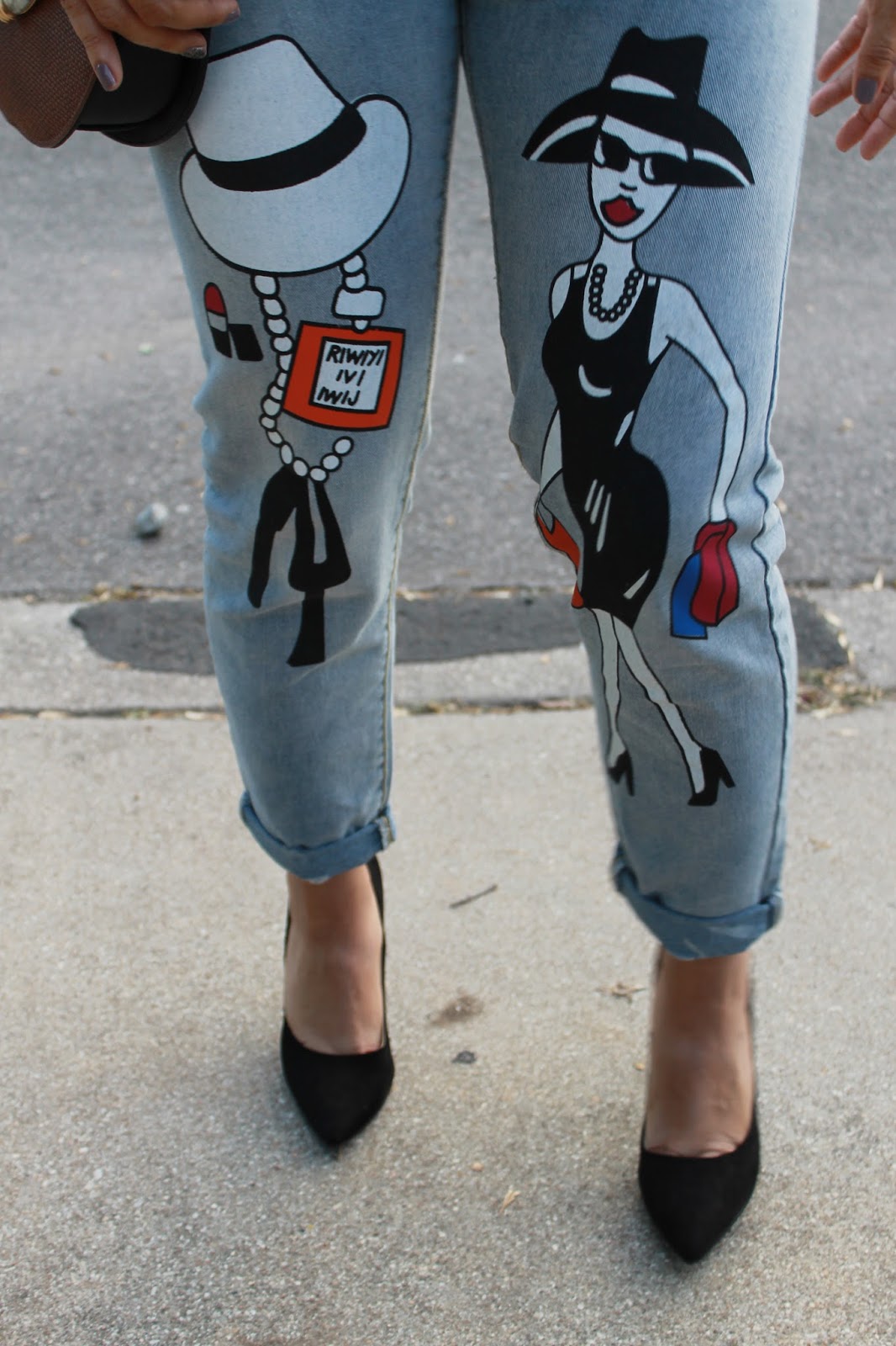 Disculpen las palabras soeces, pero esta blusa me tiene…Jaja! Ahora que empezamos a transicionar al Otoño, yo me comienzo a inclinar hacia los colores más oscuros. Como pura Nuyorquina, negro es mi color favorito. En realidad yo me esfuerzo y me salgo de mi zona de confort  por incorporar más color en mi atuendo, pero de vez en cuando regreso al negro. Esta blusa ya se ha convertido en mi pieza favorita; no sólo por el mensaje jocoso, pero también como queda y se siente. Mi amiga Michelle de Chic’tique acaba de abrir su boutique en Broadway y tiene la mejor selección de ropa y accesorios y esta blusa no es excepción. En cuanto a estos mahones, fue una aventura conseguirlos. Los vi en Facebook reportado por un contacto y los estuve buscando a nivel local y en la web, pero no los conseguí. Indagué con la foto original y descubrí que eran de una boutique en Puerto Rico! Me puse en contacto con la dueña y me alegré tanto cuando me dijo que sí enviaba a Texas! Estos mahones quedan más como un estilo Girlfriend jeans, no tan sueltos como boyfriend jeans, lo cual es buena noticia para mis pompas porque este corte me luce mejor. El estampado divertido le da a mi look un toque especial así que mantuve mis zapatos sencillos con unos tacones puntiagudos negros. El look estuvo perfecto para el Viernes de cena y tragos. Advertencia: No debería usar esta blusa en su trabajo si es una oficina con código de vestimenta conservador!