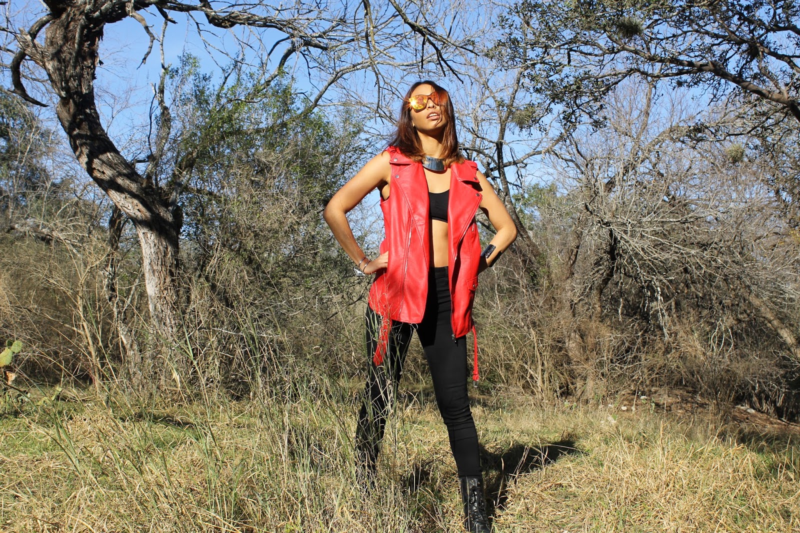 Happy Holidays, everybody! I hope you’re all enjoying this time of year with your loved ones. This year, my mother and my sister, Cece surprised me with a Holiday visit and we had a fabulous Christmas party which they helped me plan, prep and host. We’ve been having a blast touring the city and surrounding Hill Country. I’ve been dying to photograph Cece for the longest time and the weather had been pretty nice so we went to the local nature park in my neighborhood. We had some fun raiding my closet for some cool outfits we put together for the shoot. She fits in my clothes better than I do! Haha!