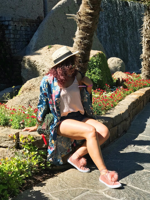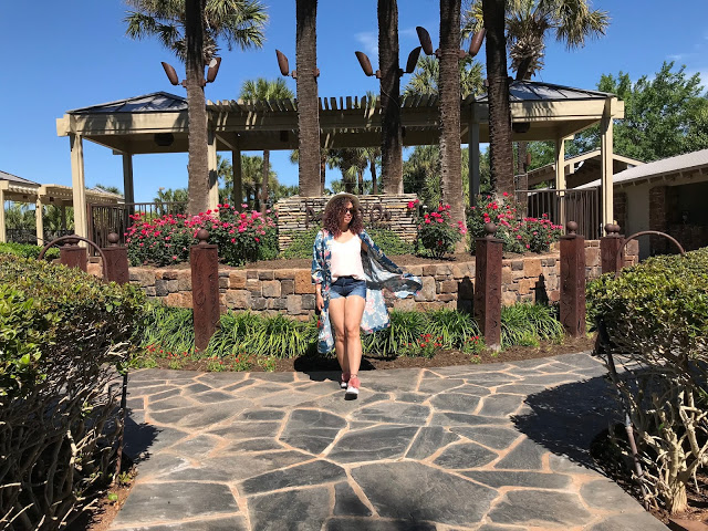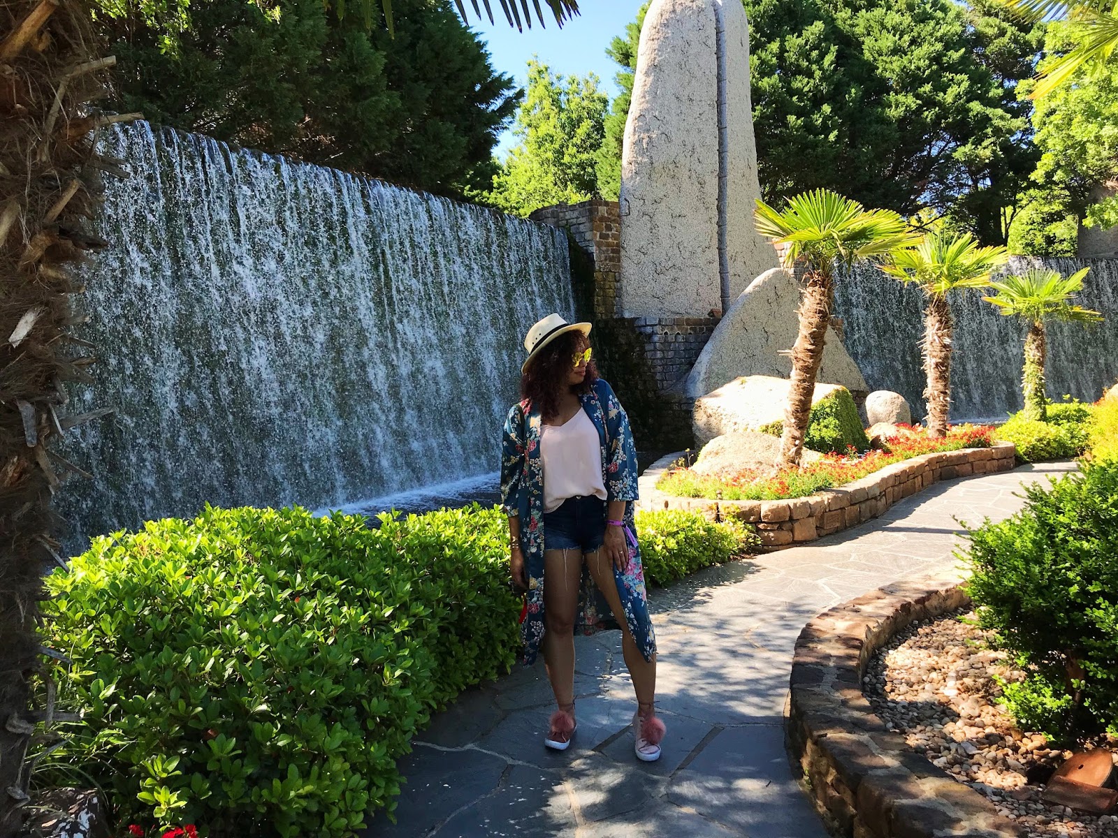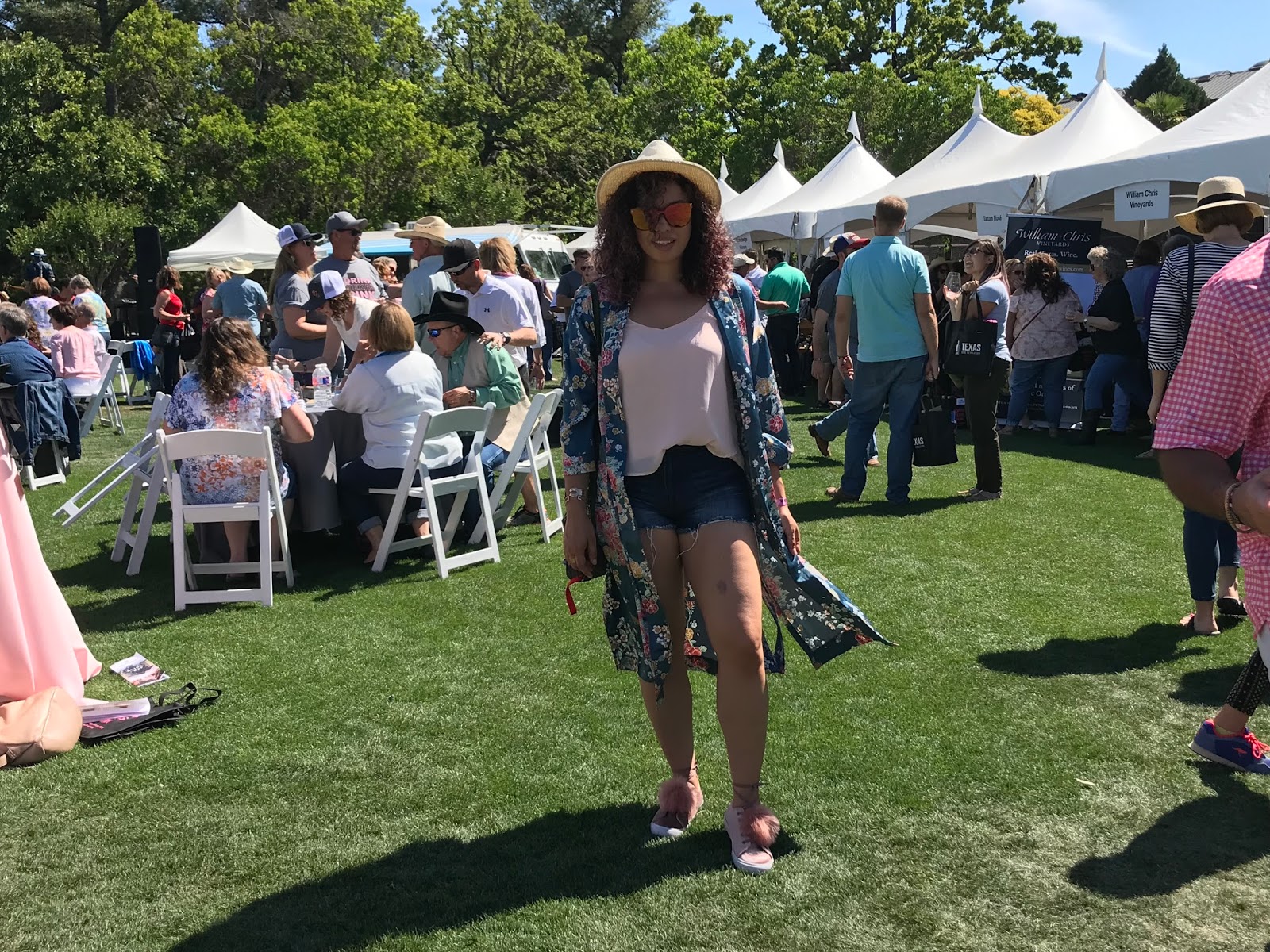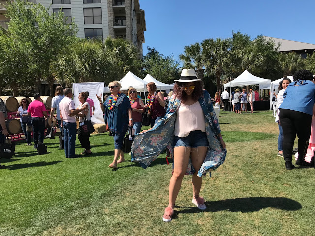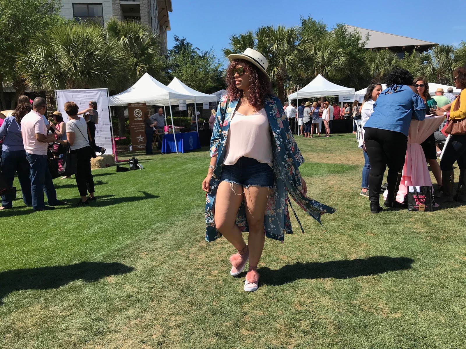 The weather was absolutely perfect for a wine fest, and held at the Horseshoe Bay Resort, just a few miles outside of Austin, it was just the perfect day altogether. I decided to wear high waist shorts and a flowy rose colored top, layered with a floral kimono robe. Dusty rose sneakers, with the shoelaces tied like ballerina shoes and my straw hat, I was in full festival gear.