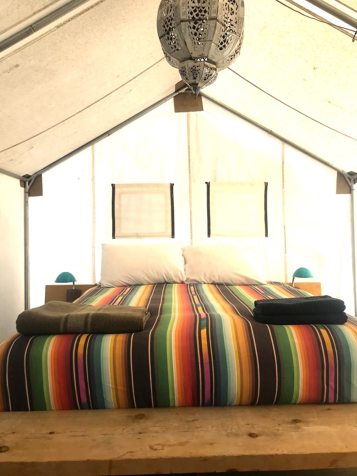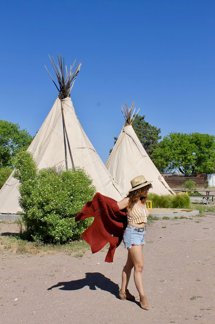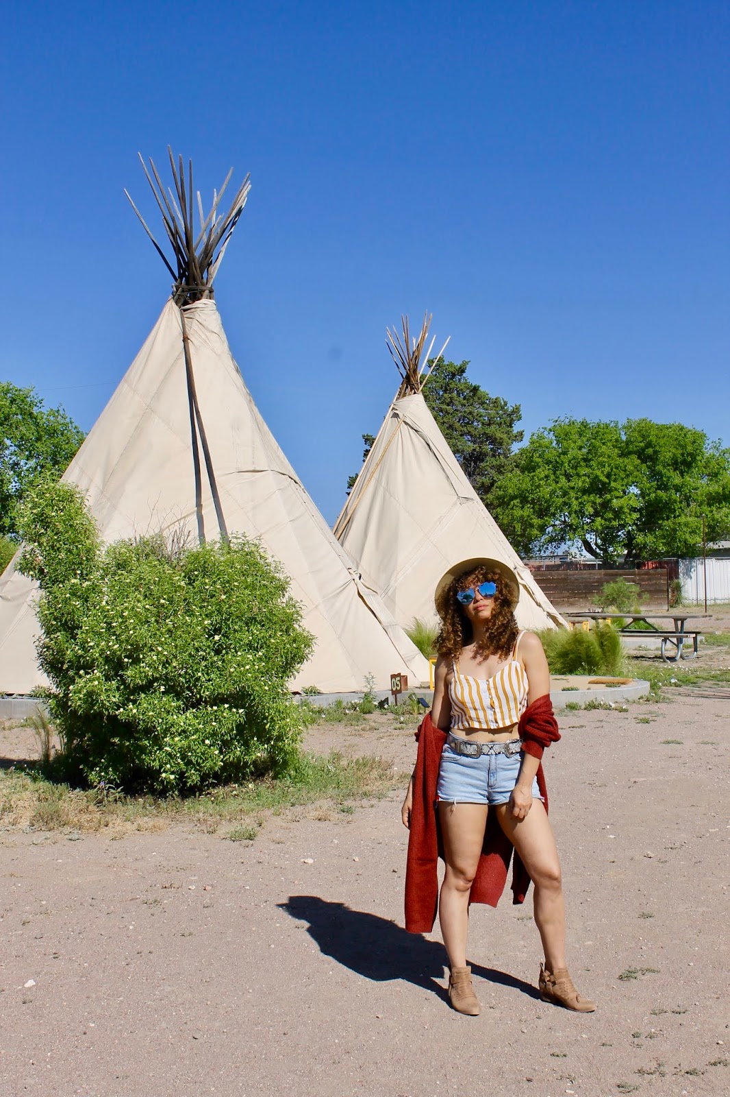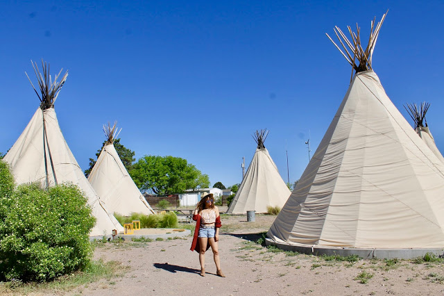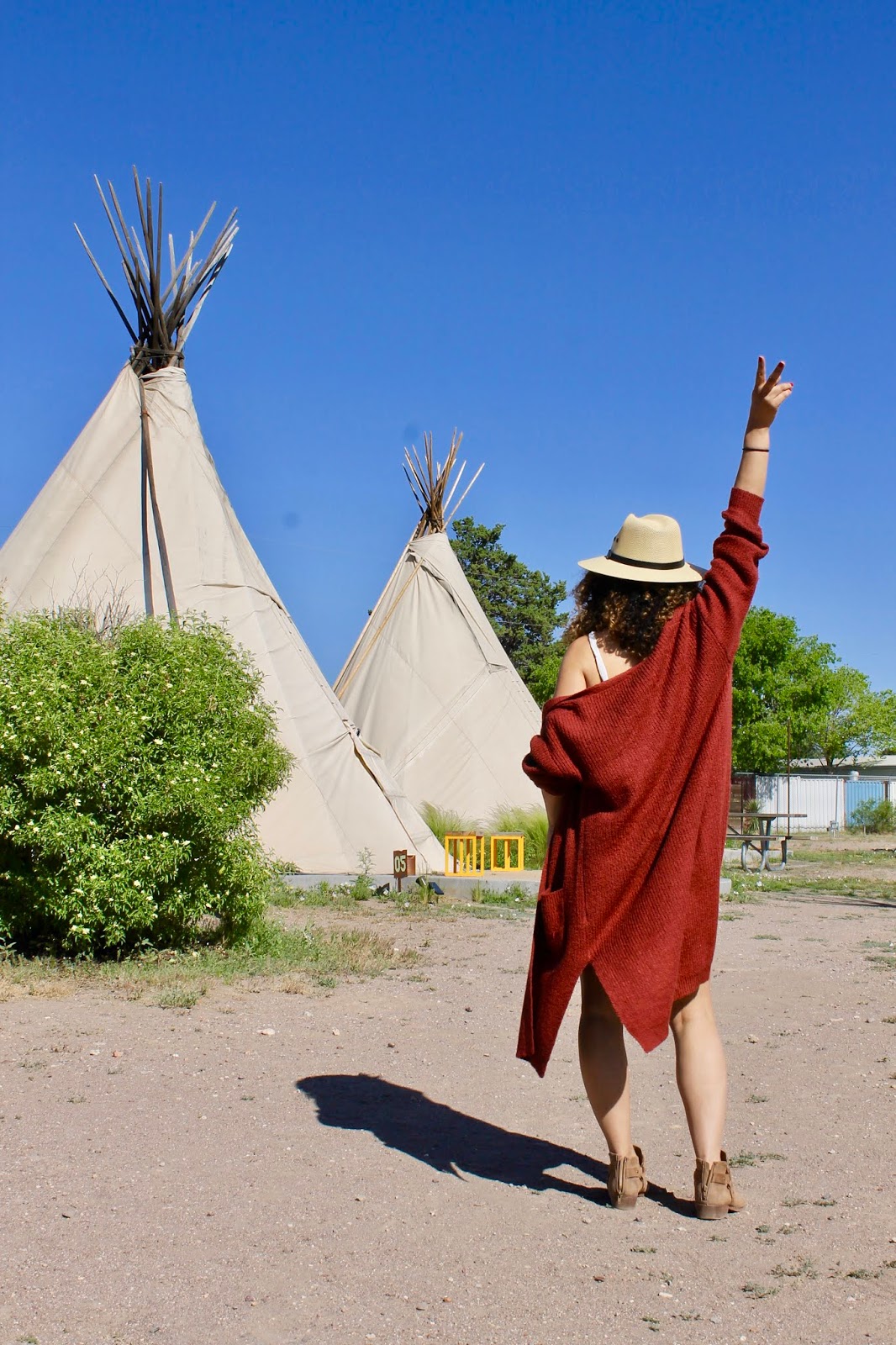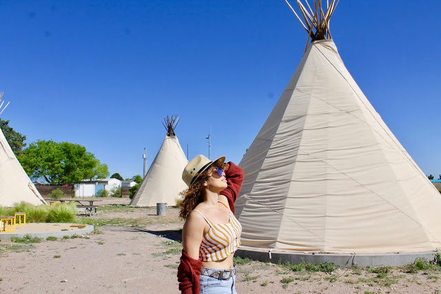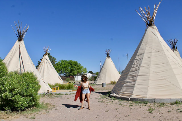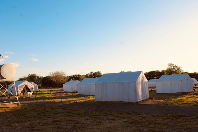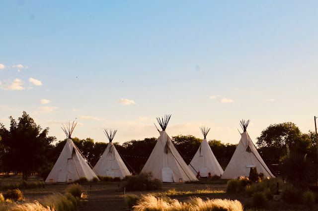 I researched where to stay and hands down the best place to get the real Marfa “experience” is at El Cosmico. It’s Glamping at it’s finest. When I searched it online years ago, the first thing that drew me in was the tee-pee experience. We so badly wanted to stay inside one! Unfortunately they were booked for the date we planned to go, but we got to stay in a Safari Tent, which was immensely cool! The grounds also have yurts and fun colored airstreams, but we felt that a safari tent or a teepee for as far “glamping” as we wanted to go and it would be a more authentic experience that way. The showers are “al fresco” which was secured, but an interesting experience nonetheless and the restrooms have the feeling of an outhouse, but are very clean and with running water. The best part, really was hanging out in front of our tent at night, blankets and wine in hand, talking and staring at the stars. It’s so peaceful out there and the perfect getaway from the day to day.