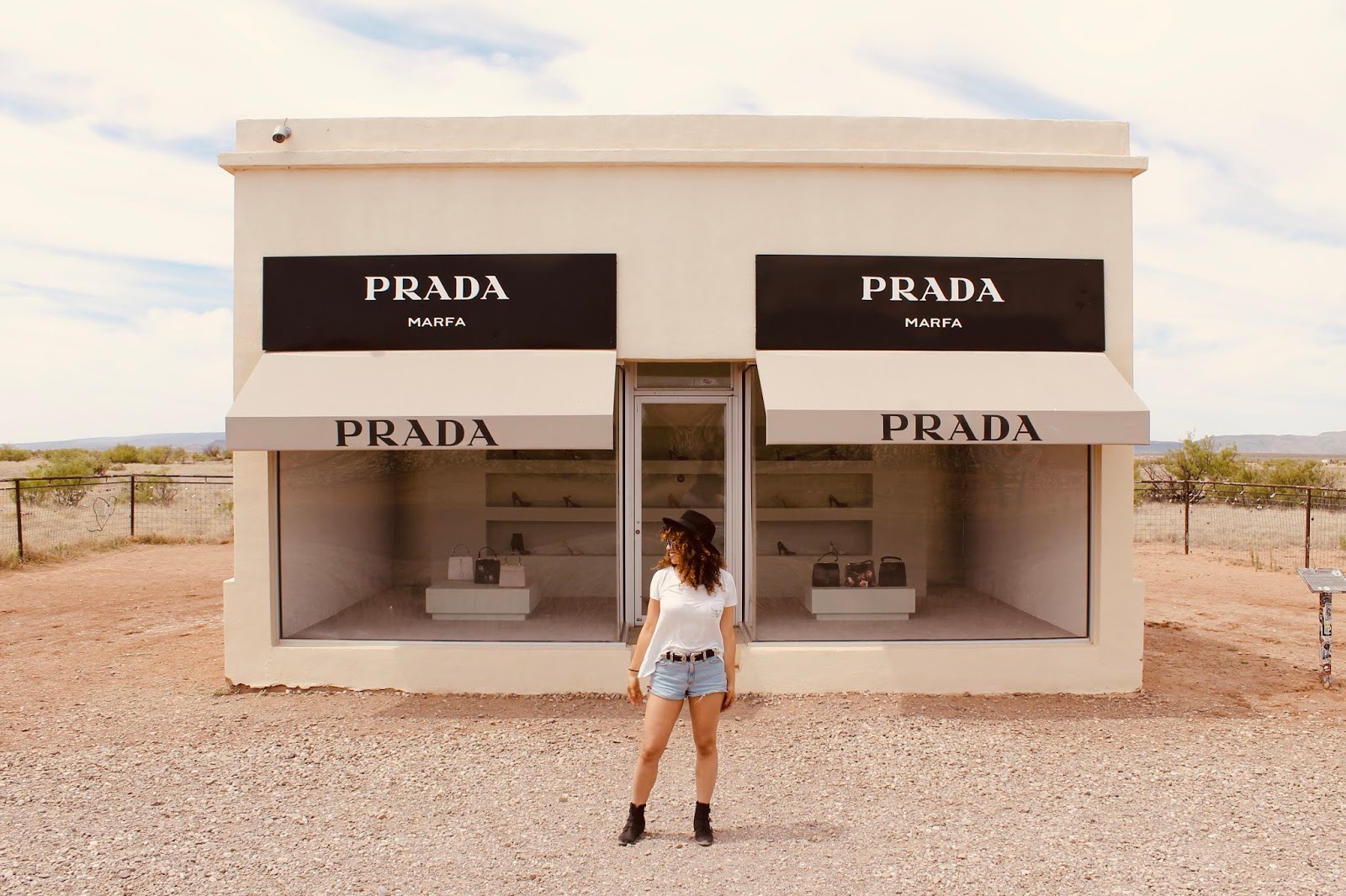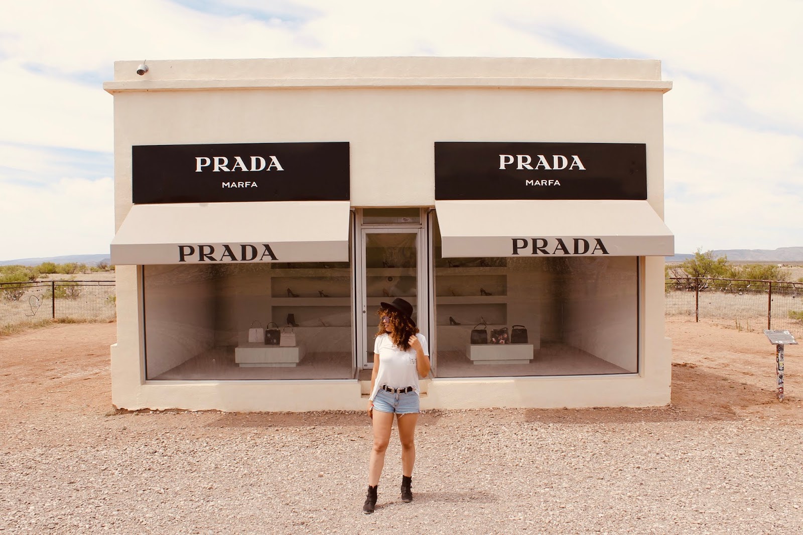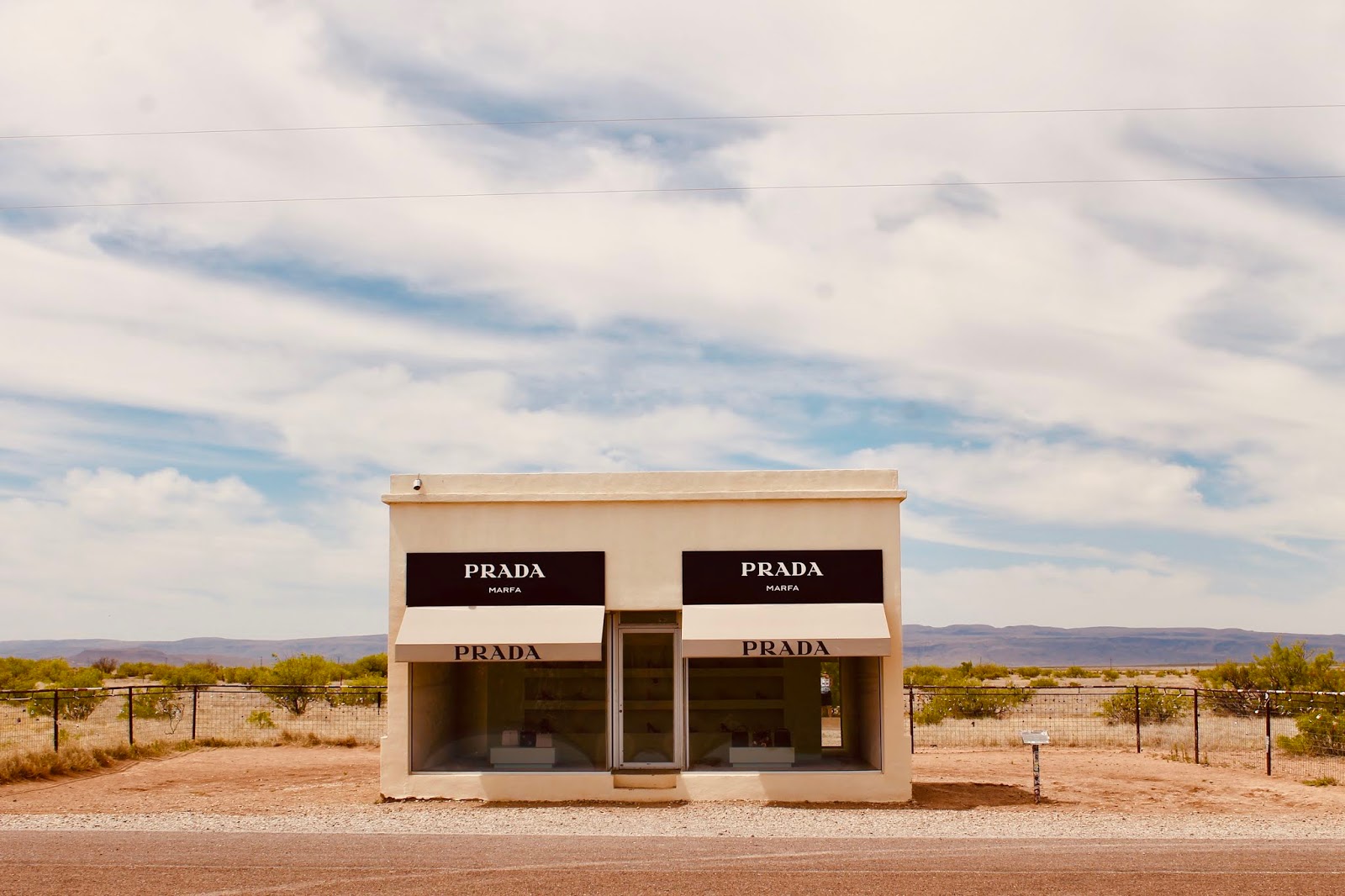Prada Marfa is a permanently installed sculpture by artists Elmgreen and Dragset, situated 1.4 miles (2.3 km) northwest of Valentine, Texas, just off U.S. Highway 90 (US 90), and about 26 miles (42 km) northwest of the city of Marfa. The installation was inaugurated on October 1, 2005. The artists called the work a “pop architectural land art project”. The installation is just another demonstration of the highly artistic community established in the area. People from all over the world, including major celebrities, have taken photos in front of the structure. It’s pretty damn cool that I finally got to visit and take my very iconic shot there, too!