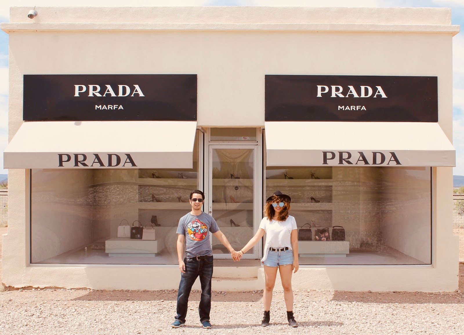 The famous Prada Marfa exhibit had been on my Texas Adventure Bucket list. You’ve seen the iconic photos, artwork and high fashion magazine spreads. The Prada Marfa installation in the middle of the West Texas desert is like a myth, far and unattainable. While we were staying in Marfa, mostly relaxing with the relaxed vibes and practically paused pace of the entire town, I was pretty excited to get the chance to visit the spot and take some great photos. I couldn’t believe that my husband would actually be down for a cute couples shot, but I just went for it, set up the tripod with the timer and got such a great photo, that we’re gonna blow it up and get it framed for our Master Bedroom! Check out the photos and see for yourself. The 6 hour drive from San Antonio, totally worth it!