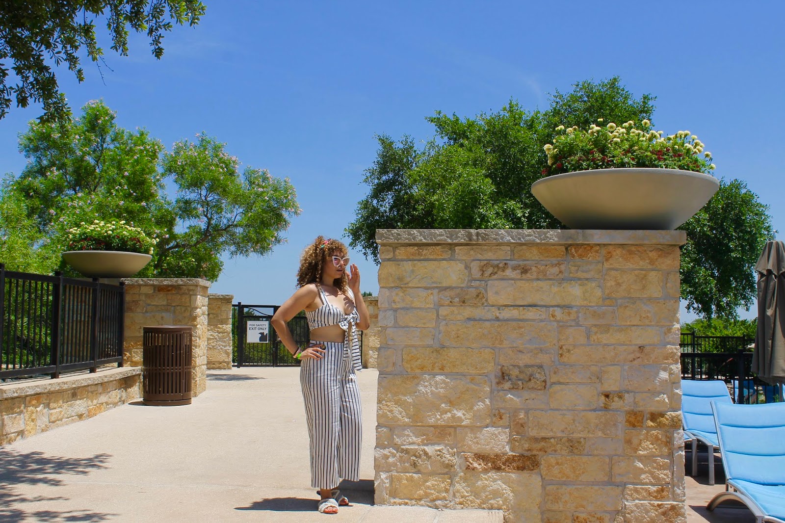My birthday was almost 2 months ago and we finally got to do the plan we had originally set up for the day. We had planned to spend the day at the JW Marriott Hill Country Resort in San Antonio, but the storm rolled in and we had to postpone. We finally had the chance to go and the day was absolutely perfect! The sun was shining, the pool was cool and the husband and I were extremely relaxed. The best part was when the checkin girl said she loved my outfit, so naturally we had to do a mini shoot, haha! In all, the experience was great. The resort has a huge pool, an adult infinity pool overlooking the golf course, a sandy beach pool, a heated whirlpool, a lazy river you can float with the provided inner tubes and a full on waterpark grade slide. We opted to cool off and just relax, though. One thing’s for sure, the food and drinks are highly overpriced and you can’t bring anything from outside, but who’s to say your insulated water thermos is actually water? Just saying… Aside from that, the staff is attentive and the relaxation is well worth it. A Day Pass grants you access to all the water activities and the game room for the kids, as well. I might opt for the Spa Pass next time. The Lantana Spa has amazing reviews so I might just check it out. This Summer I plan on enjoying myself and continue to discover what Texas has to offer. Rivers, lakes, hiking and, pool time and outdoor fun is what is all about!