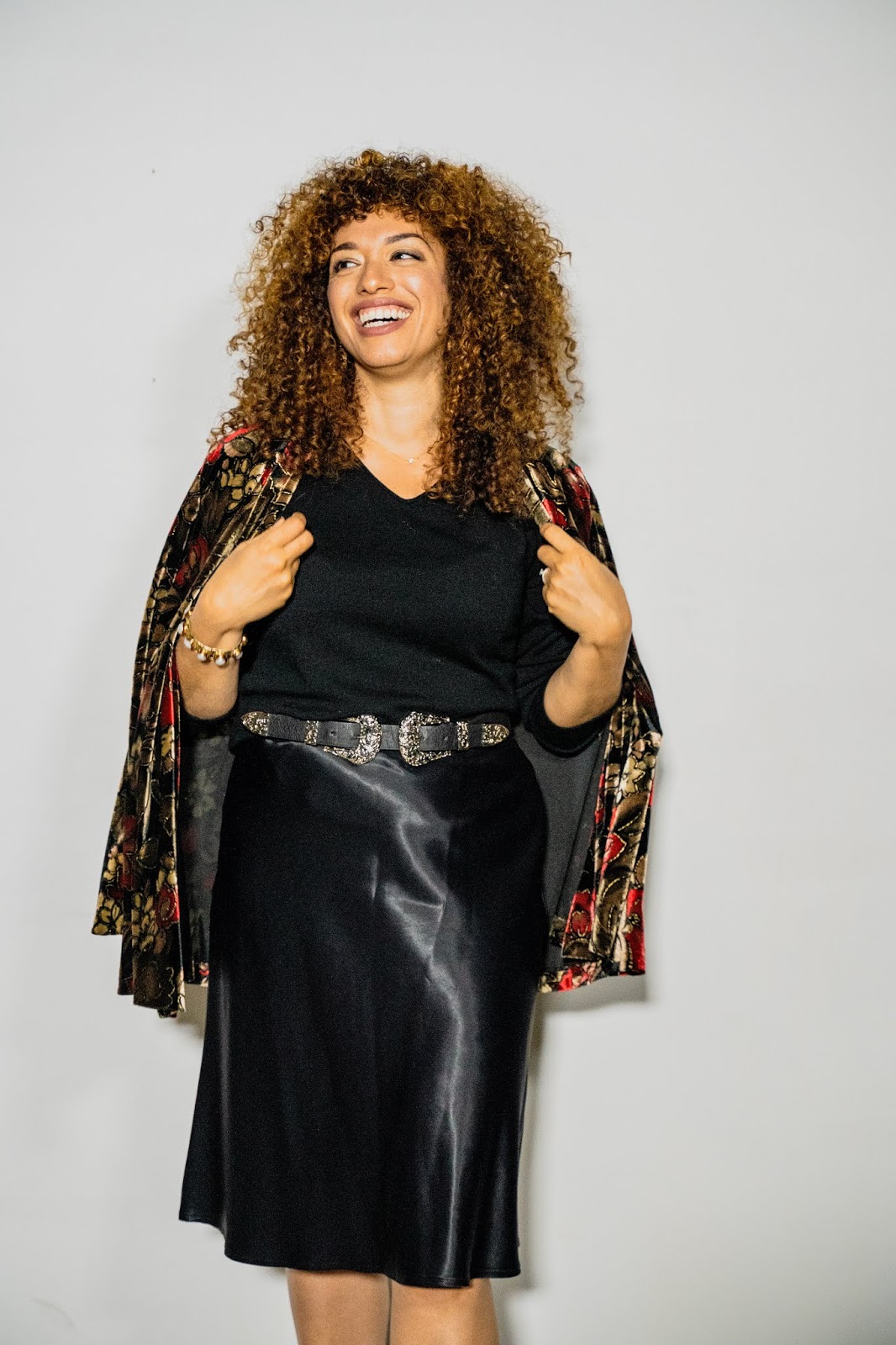 Shopping at Vintage/Antique shops, Consignment shops, non-profit entities like Goodwill, swap meets, rack sales, and now online second hand sites like Poshmark, ThredUp and DePop are great sustainable shopping options. I know that shopping at stores like Goodwill can seem intimidating at first and you can get lost in a sea of clothing, shoes, accessories, handbags and even home goods, but there is definitely a trick to finding treasures. The first time I went in after I started my partnership, I went to the Goodwill close to my house, and was seriously overwhelmed, not noticing that the racks are divided by size and style. So, I kinda walked aimlessly for about 20 minutes not finding anything I liked. I was about to give up, until I decided to go around and start at the very front of the store again. What I was looking for specifically was a black sweater. Once I discovered where the sweaters were, (upfront, since winter was just starting) I found this fabulous Eileen Fisher v-neck sweater and the perfect black turtle neck for like $6.49 each! I was shook and so happy! The prices are shocking! After that awesome find, I went to the blazers and jackets sections, only to discover incredible vintage pieces. This velvet shawl cardigan immediately called my name, and there was also an uber fabulous puff sleeved gold damask bolero style jacket, that put stars in my eyes! For my second trip, I visited a Goodwill close to the big North Star Mall in San Antonio. This store looked more like a Department Store. It was gorgeous! Every section was perfectly styled and there were some seriously gorgeous finds right up front on display. I found this black silk skirt, an African print bomber jacket and the most gorgeous tulle full length skirt, fit for a Red Carpet! There were so many great home goods, too. Wine & Margarita glasses, holiday serving platters and cute coffee mugs.