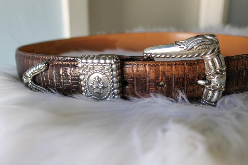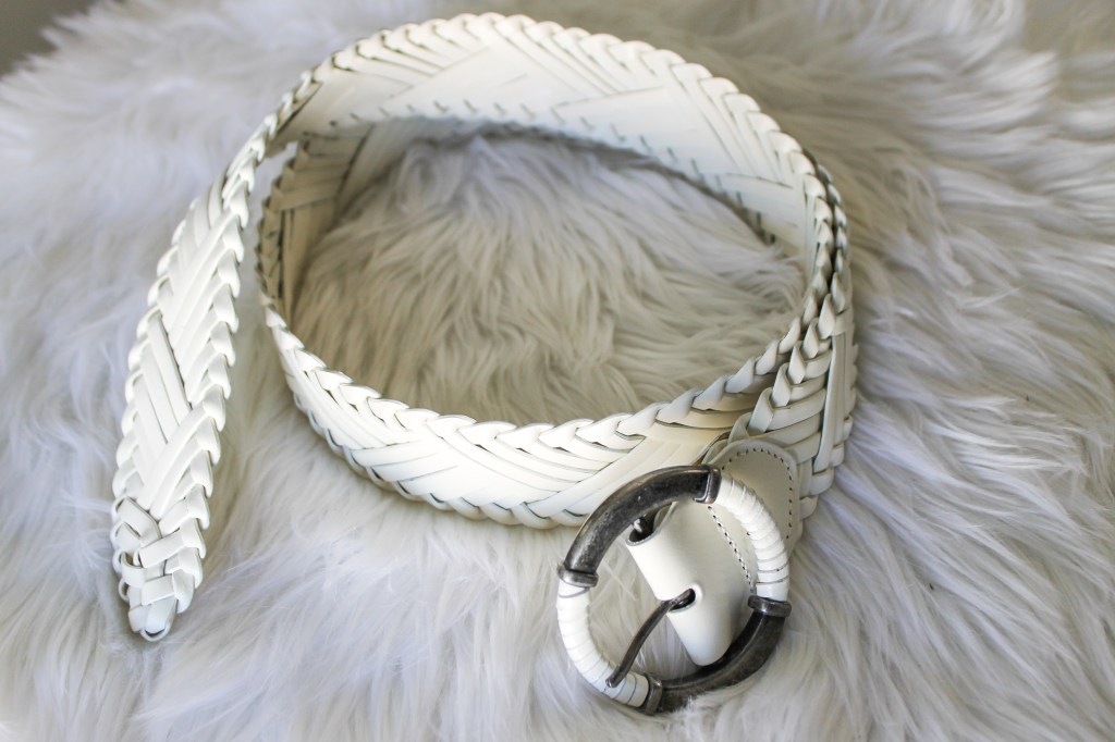 I have been on the hunt for interesting belts with fun buckles for quite some time, and the week of their Grand Opening, Accents had the featured brand table beautifully set up with Brighton accessories. Their belt collection is absolutely gorgeous, so I had to have one! To be honest, I got so excited when I found this belt at $9.99, that I didn’t think to try it on. I saw it said M and I assumed it would fit. As soon as I got home and tried it on, it barely fit on my natural waist on the very last hole! Either I have to lose 2 inches immediately or only wear it with ultra high waisted bottoms or with loose dresses. Either way, I’m gonna wear this dang belt! LOL! On a second trip I found 2 more cool belts which were on sale for 2 for $10. The turquoise isn’t exactly my style, but it was interesting enough to style with a muted or toned down look where the belt is the stand-out piece. The white braided belt was really cool, so i’ll be styling that one with multiple looks throughout the year.